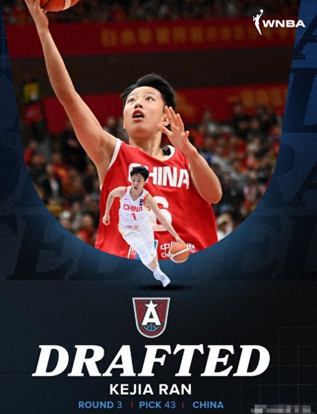中国历史第4人!冉珂嘉被WNBA亚特兰大梦想 第三轮第43顺位选中