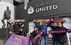 世体:巴萨球迷已抵达纽卡,纷纷与罗布森和希勒雕像进行合影