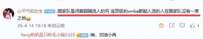 对于这样一位能得分,能组织,能抢板的天才后卫落选中国女篮集训名单,却又能在今天被WNBA球队选中,人们感到有些惊奇,并引起热议:“冉珂嘉这小姑娘真能抢板啊,19.1分还是篮板王,亚特兰大这波捡到宝了。看着她在U19和全运会的表现,感觉WNBA也挡不住她的脚步。期待她在梦想队发光发热!”,不少球迷质疑国家队的选人,他们说,“国家队是闭着眼睛选人的吗? 连顶级的WNBA都能入选的人在国家队没有一席之地”。这的确有些奇怪。诸位,这事你们怎么看?