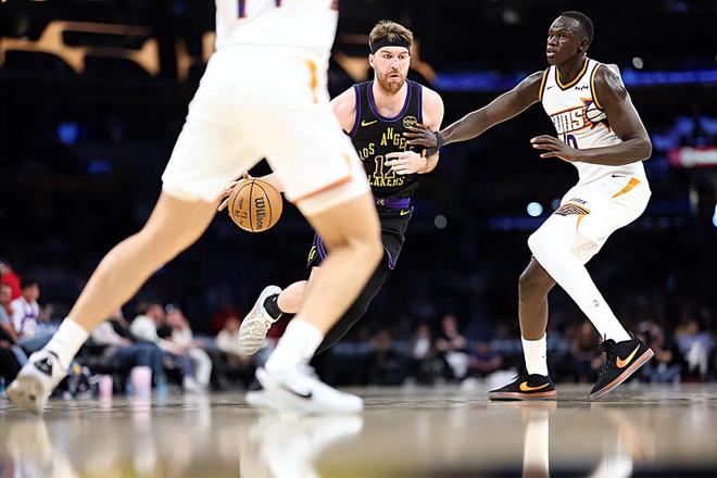本场比赛中,湖人的双向合同替补锋线球员德鲁-蒂米(Drew Timme)在比赛尾声阶段终于得到了出场机会。蒂米全场出场7分13秒,投篮1中1,三分线外1中1,得到了3分2助攻1抢断的数据,还有1次失误和1次犯规,正负值为+1。在有限的出场时间内,蒂米其实还是打出了一些东西的。蒂米命中了一记三分,展现出了自己的投射能力,他也送出了两记助攻,展现出了自己在传球和策应方面的能力。蒂米的出场时间并不多,这种情况下他也确实是很难打出更加华丽的数据,展现出更强的整体竞争力,但是总体来看,蒂米在本场比赛中的表现已经是相当不错了,他也是抓住了有限的机会证明了自己在进攻端的才能了。