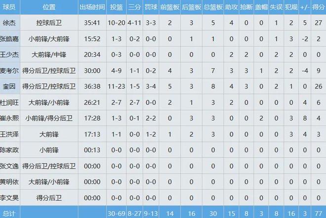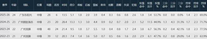 广东队数据如下: