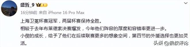 媒体人“盛哲”发文点评: