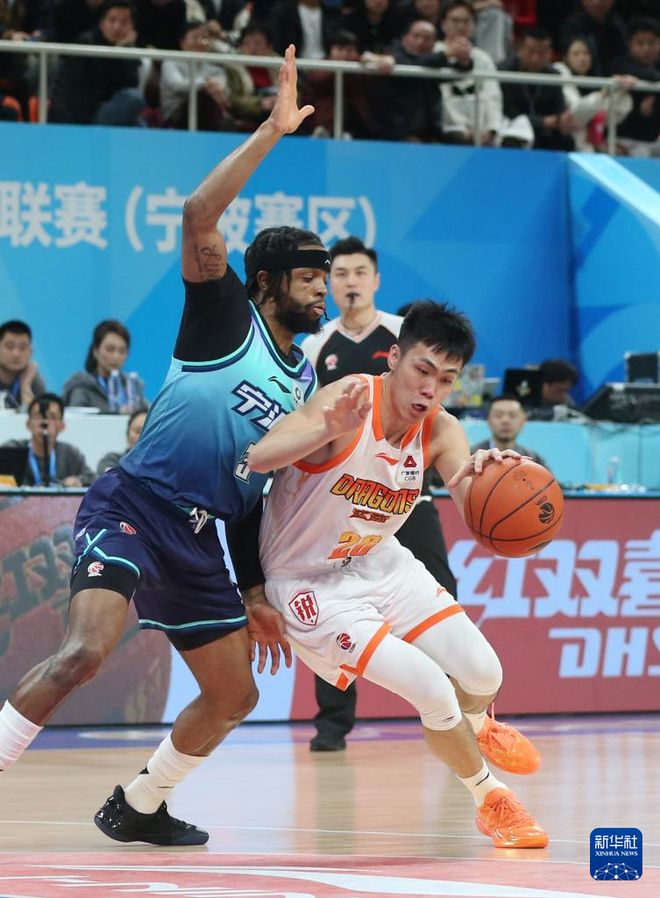 限制庞峥麟(右)是山东男篮的首要任务。新华社发