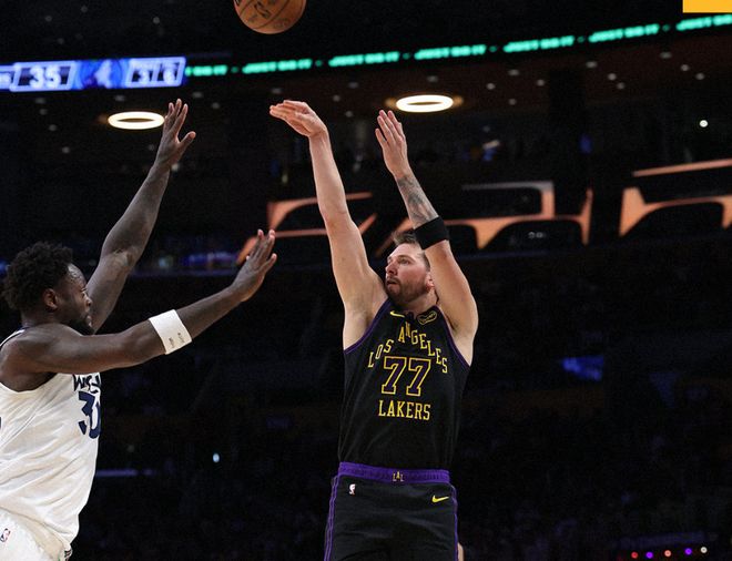爱德华兹也终于迎着里夫斯轰进三分球。后半段东契奇强攻篮下,里夫斯提供外线火力支持,在肯纳德上篮打进后,湖人已经领先19分。节末海兰德帮助森林狼稍稍止血,三节打完,湖人84-68领先森林狼。决战第四节,肯纳德连续得分,里夫斯轰进3+1后,接到肯纳德传球再中三分,湖人最多拉开23分分差!中段海兰德带队联合里德一路追到15分,海兰德和范德比尔特起冲突,两人喋喋不休。斯玛特和东契奇两记三分球稳住局面,此后东契奇跳投+艾顿挂扣杀死比赛悬念。最终湖人主场120-106大胜森林狼,本赛季完成常规赛横扫!