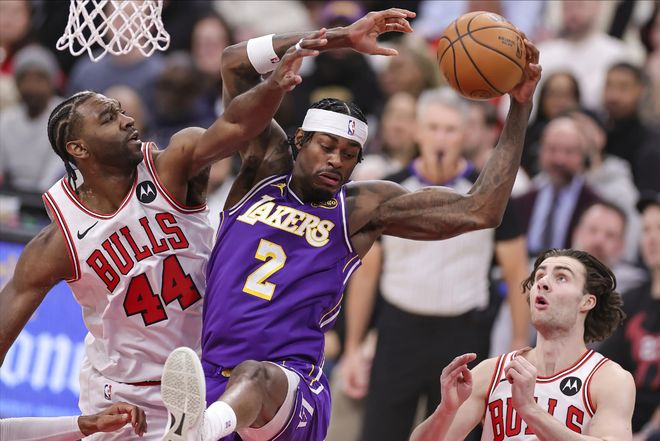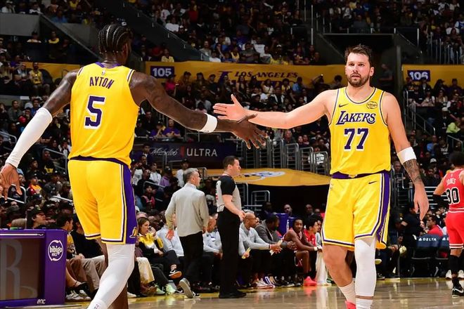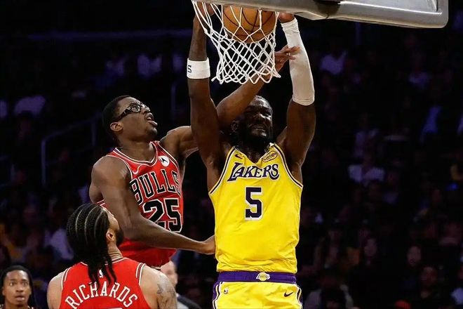 湖人今天赢球,最大的功臣当然是东契奇,但最大惊喜,还得是艾顿。今天艾顿打了37分钟,出场时间全队第三,比东契奇打得都久,全场13投10中,拿下23分10篮板,其中6个前场篮板!今天的艾顿,不再是“顿宝”了,变成了“统治者”艾顿。公牛内线实力一般,球迷戏称“眼镜一戴,斯塔德迈”的杰伦-史密斯,完全被艾顿统治了,全场只拿下14分4篮板。今天艾顿多次跟三巨头完成配合,吃饼效率非常高,打得很强势。公牛第四节疯狂包夹东契奇,后者基本全部传给艾顿吃饼,很轻松。