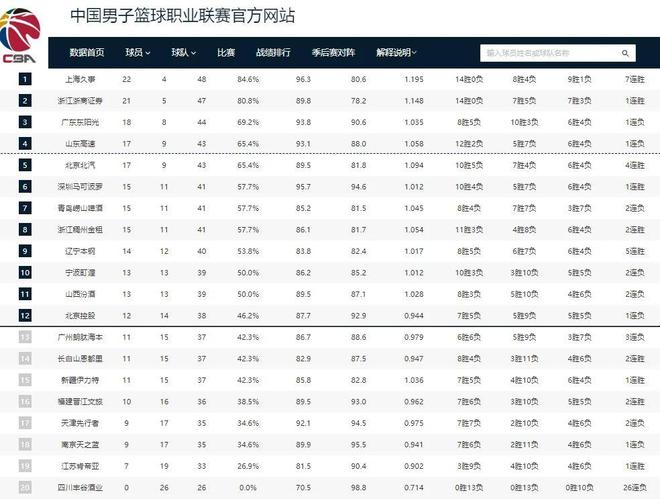 CBA排名!辽宁连胜广东惨败,北京直追四强山东输球,上海大逆转