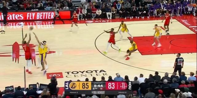 这比赛一度打得非常激烈,两支球队各自最大领先分差只有10分,在下半场打得非常胶着。然后在意料之中,火箭的进攻再次崩盘,湖人在上半场尝试各种防守杜兰特的办法之后,还是拿出了最经典也是最好用的办法,上夹击。
