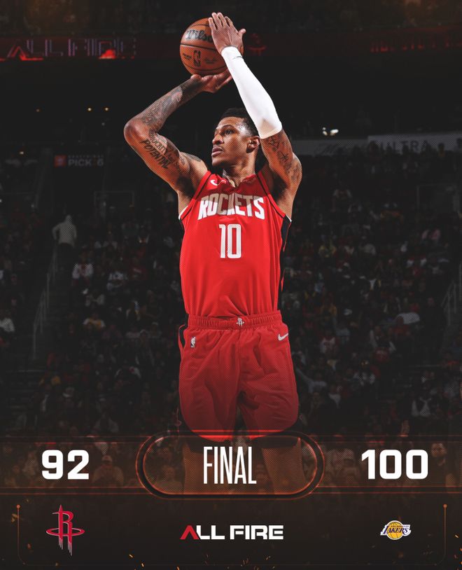 北京时间3月17日,火箭92-100不敌湖人,这场比赛后火箭与湖人的胜场差拉开到1.5个。这场比赛休斯顿火箭队是在末节哑火,整个第四节火箭队只得到12分,最后的6分钟里火箭队只拿到2分,而且这2分还是杜兰特最后的刷分,因为那时候只剩下29秒无力回天了。