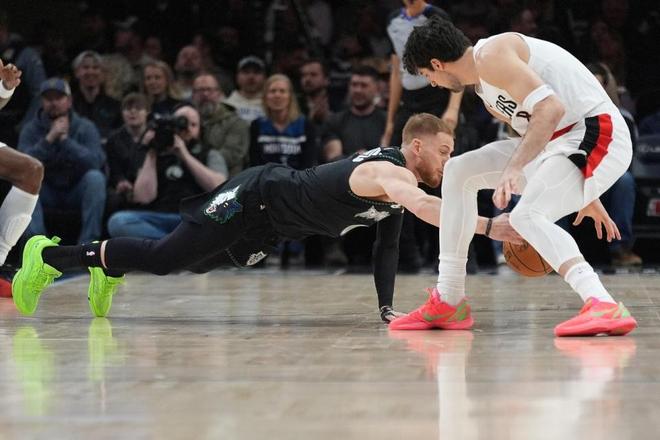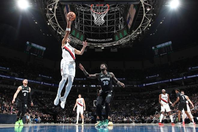 开拓者过去两场连赢篮网与步行者收获2连胜,森林狼过去两场连赢太阳与爵士收获2连胜,本赛季前三次交锋森林狼均战胜开拓者。本场森林狼缺少爱德华兹与里德,开拓者缺少杨瀚森、夏普与利拉德,杨瀚森本场是第36场缺席NBA比赛。首节双方内线接连得分,迪文琴佐连续三分命中,但开拓者内外开花保持领先优势,首节比赛结束开拓者33-28领先森林狼。