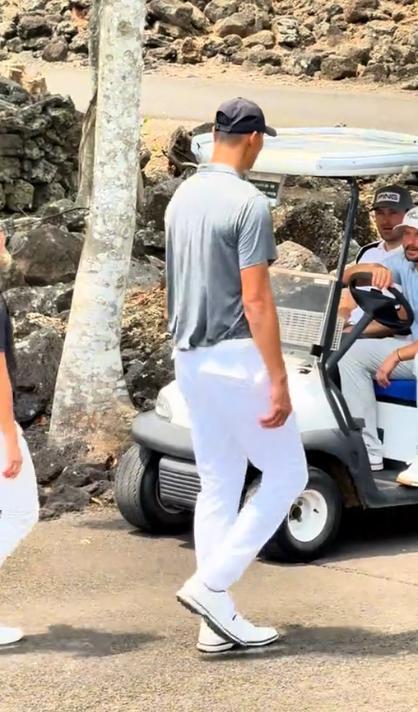 这是一场规格极高的职业业余配对赛,他一身专业的高尔夫行头,挥杆动作舒展漂亮,完全是以一个纯粹的体育爱好者的身份在享受竞技。