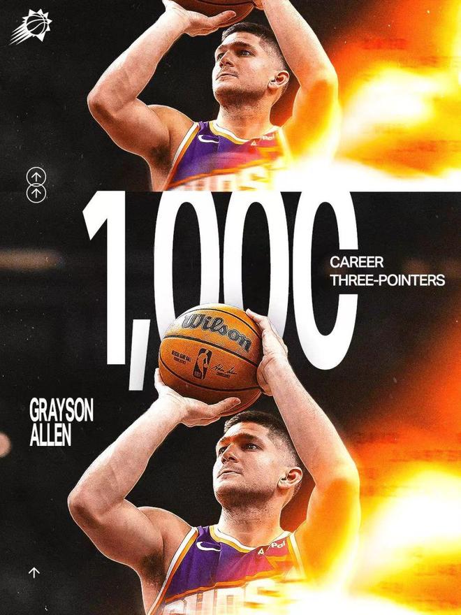 阿伦达成生涯1000记三分里程碑。