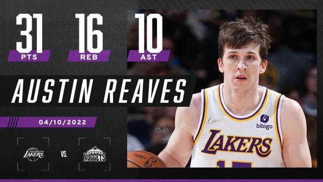 其中收官战对阵掘金,里夫斯交出了31分16篮板10助攻的三双,并且在第四节最后时刻连拿5分拖进加时+加时赛独得7分带领湖人完成逆转。