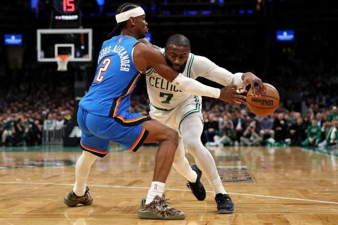 雷霆过去12场收获12连胜,凯尔特人上一场主场92-102输给森林狼,本赛季首次交锋雷霆主场104-102险胜凯尔特人。本场凯尔特人缺少武切维奇,雷霆缺少索伯。首节开局雷霆连续命中3记三分率先取得领先优势,且之后逐步压制凯尔特人扩大两位数领先优势,首节雷霆23中12,其中三分9中4,首节结束雷霆31-20领先凯尔特人。