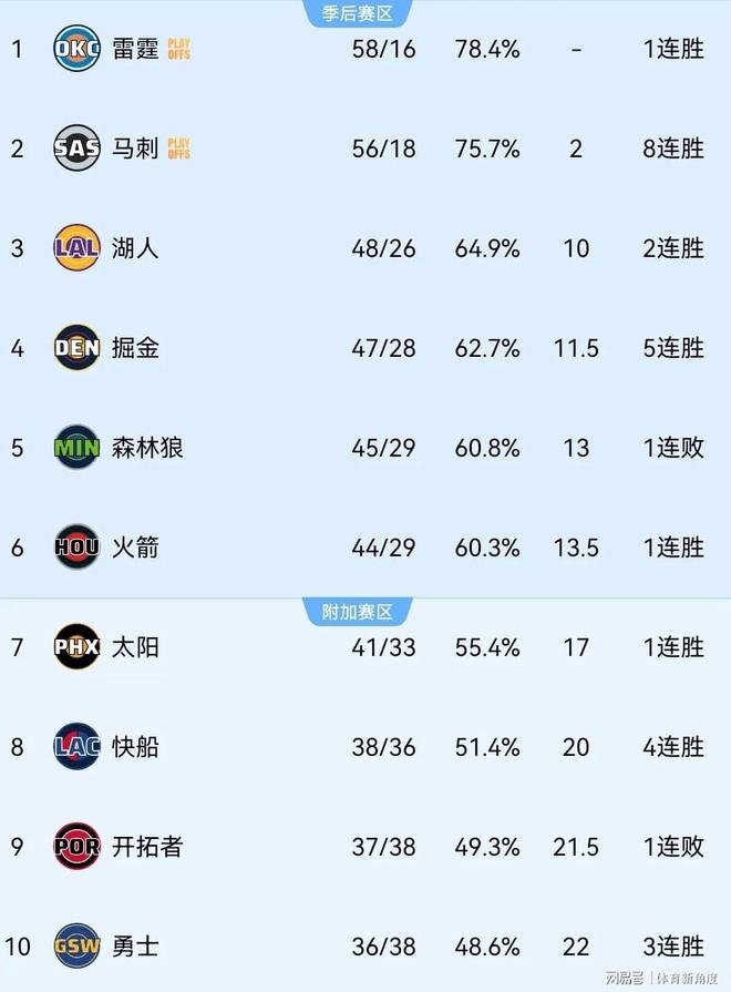 马刺队不仅文班亚马表现出色,整个球队也展现出了强大的竞争力。他们多次证明自己不惧怕任何强队,本赛季常规赛更是以4 - 1的比分碾压了卫冕冠军雷霆队。如今,马刺队已经领先湖人多达8个胜场,再加上在本赛季与湖人的对阵中,马刺以3 - 1占据优势,因此他们正式锁定了西部前二的位置。这样一来,紫金军团湖人队就无缘西部第二了,目前他们当务之急是保住西部第三的位置,毕竟现在他们只领先第四的掘金队1.5个胜场。说不定今年西部季后赛首轮,真会出现湖人VS火箭这样备受瞩目的流量大战呢(手动狗头)。