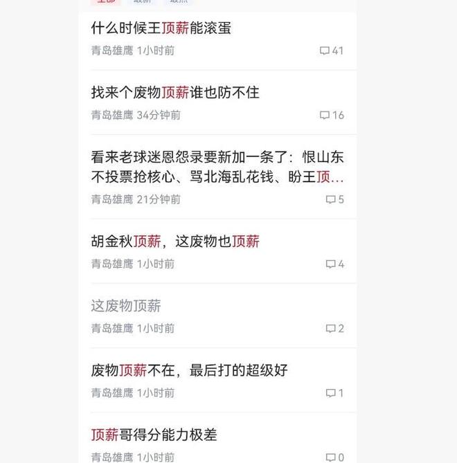 王奕博两头不讨好,新老东家球迷都喷他。青岛球迷说,“什么时候王顶薪能滚蛋”、“找来个废物顶薪谁也防不住”。老东家球迷说,不知道为啥对我们怨气那么大!休赛季方俊也开了400万合同留你!你自己要走!然后一直感觉跟我们有仇似的,回我们主场打球,比赛下场的时候,手放耳旁做挑衅,赛后老队友找你围一起叙旧不情不愿!现在去青岛拿顶薪,天天被青岛球迷喷,不知道有啥想法。