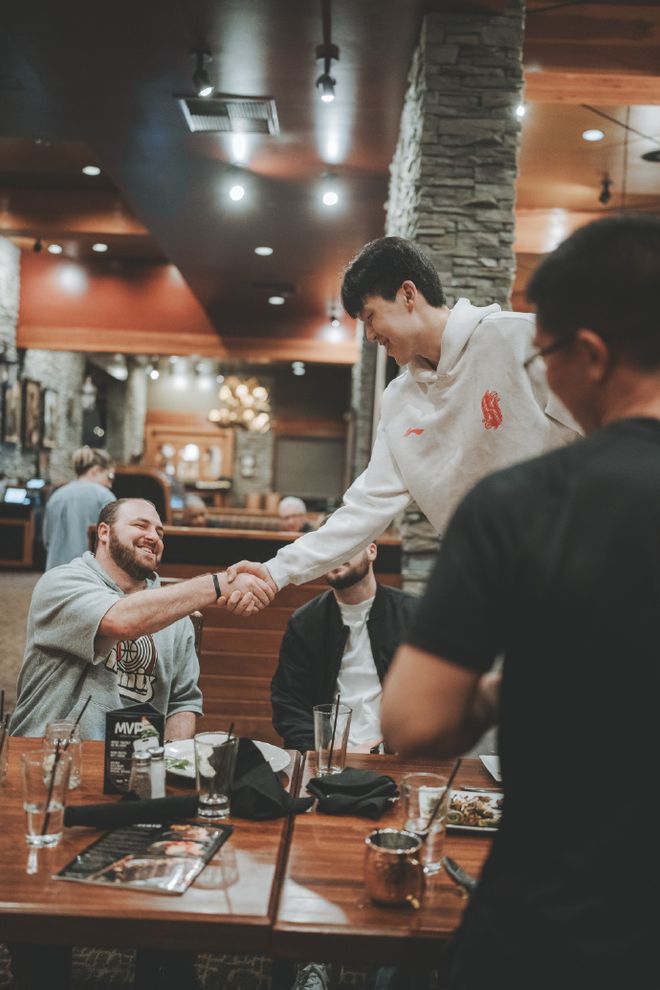 都是好兄弟!杨瀚森请混音全队吃饭 和G联赛教练队友们有说有笑
