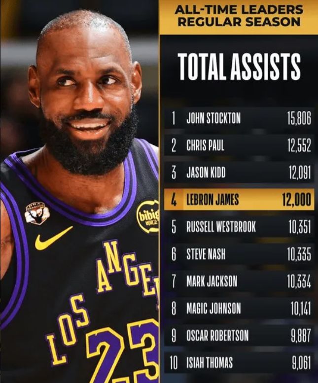 2.他成为NBA历史上第四位完成12000助攻的球员;