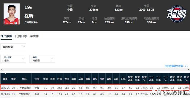 本场比赛,广州内线球员徐昕统治篮下,出战29分06秒,投篮10中7,罚球8中7,得到21分11篮板4封盖。