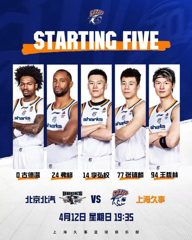 本场比赛,大鲨鱼外援怀特塞德和洛夫顿因伤缺阵,王哲林、张镇麟、李弘权和双外援弗格、古德温联袂先发。首节弗格投中4个三分球,古德温投中两个三分球,帮助本队以24比18反客为主。