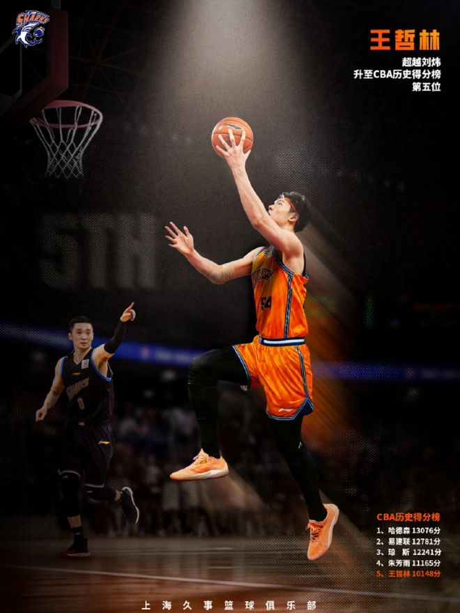 王哲林CBA生涯总得分达到至少10148分,超越刘炜10147分,升至CBA历史得分榜第五,也是高居CBA现役第一。