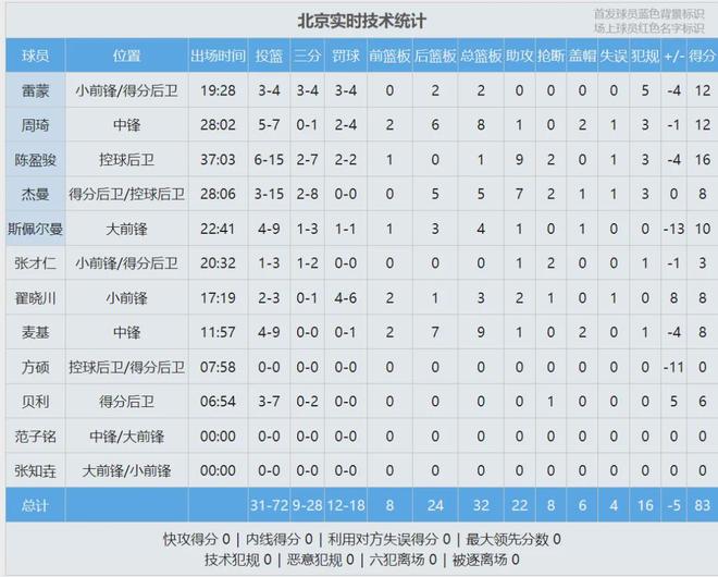 北京男篮中锋周琦首发出战28分钟,7投5中拿到12分8篮板1助攻2盖帽1失误。替补中锋麦基出战12分钟,9投4中得到8分9篮板1助攻2盖帽。他俩合砍20分17篮板,比王哲林少4分。周琦罚球依然没什么改善,最近两场7罚3中。