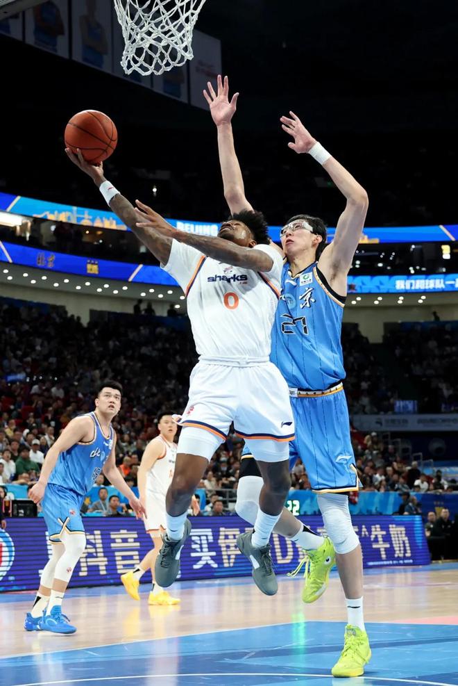 尽管阵容不整,大鲨鱼却几乎全场掌控局面,领先优势一度接近20分。弗格、王哲林、古德温组成的“三叉戟”轮番发威,彻底打乱了北京队的防守部署。