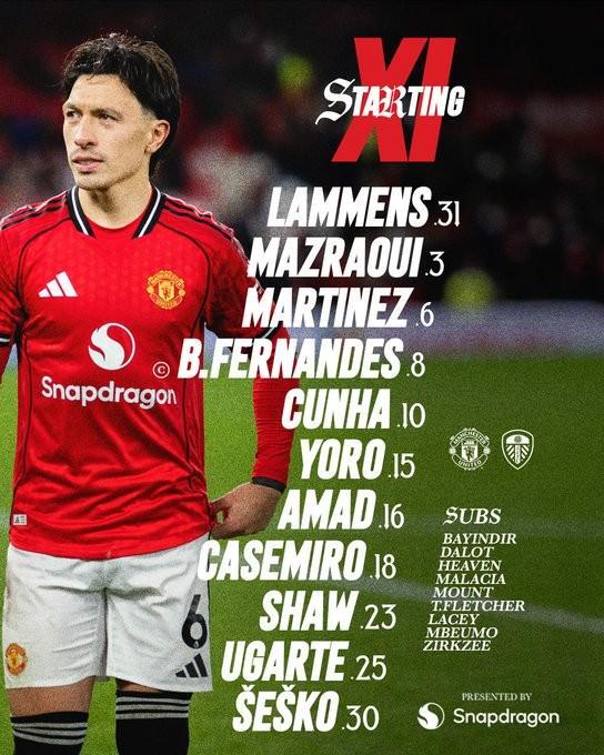 北京时间4月14日03:00,英超第32轮的一场对决。曼联坐镇主场,迎战利兹联。赛前,曼联的阵容公布如下: