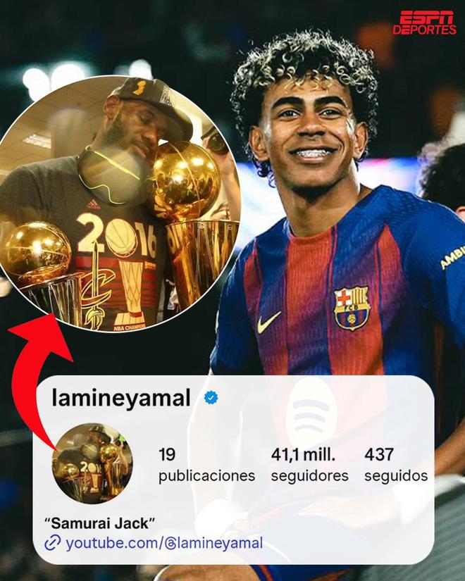 欧冠半决赛首回合0-4输给国米后,巴萨边锋亚马尔干了件事:把社媒头像换成2016年詹姆斯逆转勇士捧杯的照片。那年骑士1-3落后最终翻盘,是NBA历史上最经典的逆袭之一。