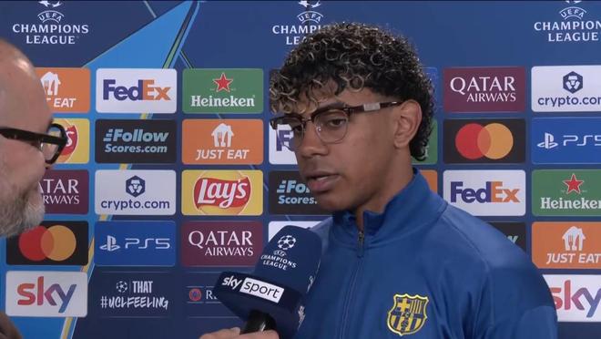在欧冠1/4决赛次回合客场挑战马德里竞技的比赛前夕,巴塞罗那前锋亚马尔接受了来自意大利天空体育名记迪马济奥的采访。