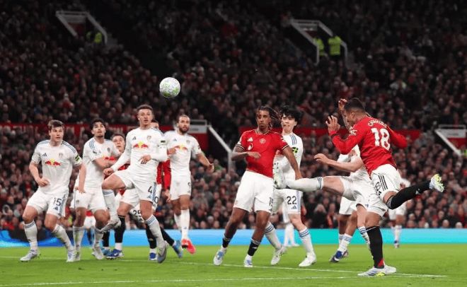 下半场第56分钟,利马因报复动作吃直红,曼联少打一人却仍由卡塞米罗头球扳回一城。第86分钟,他再次头槌攻门,却被勒温门线解围——绝平机会,就这么飞了。