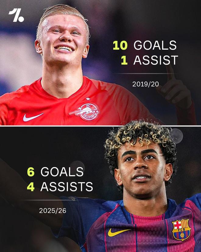 据统计,18岁275天的亚马尔成为欧冠联赛历史上单赛季参与至少10球(6球4助)最年轻的球员,超越了哈兰德此前保持的纪录(2019-20赛季,10球1助,19岁212天)。