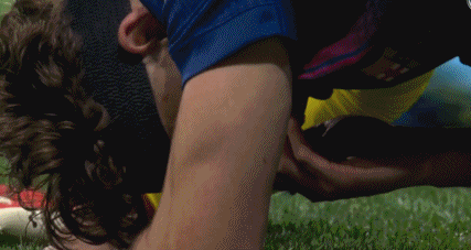 第26分钟,费尔明头球攻门后被踢到面部,接受队医治疗