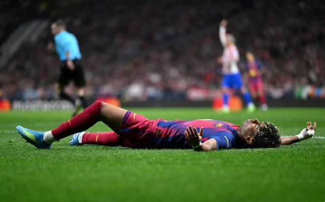 没有任何的保留,开场之后巴塞罗那全力向马竞的禁区发动攻势!并且在第4分钟就抓住了机会,朗格莱出球失误,亚马尔断球单刀破门,1:0!巴萨取得梦幻开局,将总比分缩小为一球。
