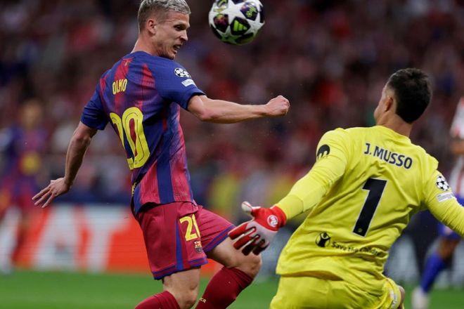 比赛节奏完全被巴萨带起来,马竞后防线频频告急。第24分钟,格列兹曼传球失误被断,奥尔莫送出精准直塞,费兰小角度抽射破门,巴萨2-0领先,总比分神奇扳为2-2!