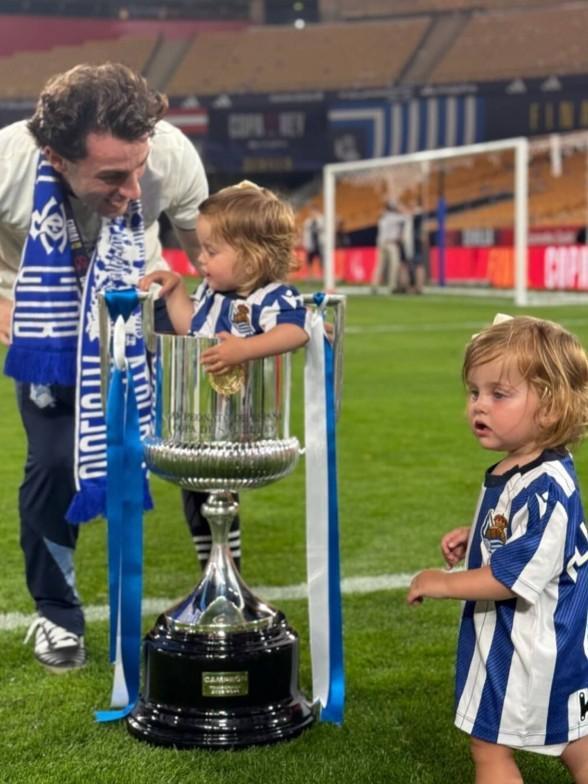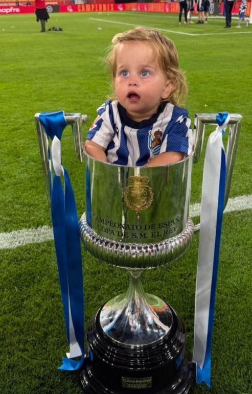 比赛结束后,皇家社会后卫奥德里奥索拉带着女儿上场庆祝,他把女儿塞到了国王杯奖杯里进行庆祝。