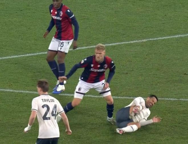 本场比赛第45分钟,佩德罗在与博洛尼亚中场延斯-厄德高拼抢之后痛苦倒地,最终在队医的搀扶下退场,强烈的疼痛感甚至让这位久经沙场的老将当场落泪。
