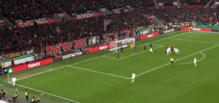 第40分钟,卡尔斯门前抢点,离谱将球踢飞