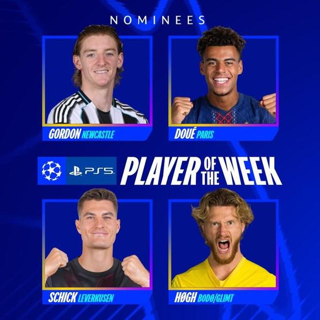 北京时间2月19日,欧冠官方公布了淘汰赛附加赛首回合最佳球员候选名单,这4名球员为戈登、杜埃、希克、卡斯帕-霍。