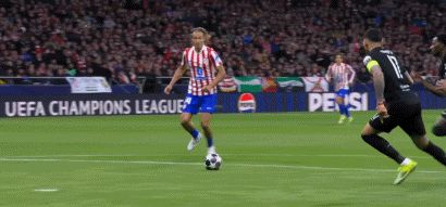 第14分钟,范德芬失误滑倒,格列兹曼单刀破门,马竞2-0!