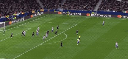 第14分钟,范德芬回防时摔倒送上大礼,格列兹曼冷静将球打进,马竞两球领先。