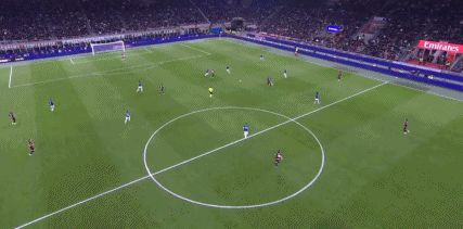 错失良机的国米1分钟后就遭到惩罚,AC米兰中场快攻,弗法纳中圈弧顶前送出手术刀式直塞,埃斯图皮尼安高速插上接球突入禁区获得半单刀机会,埃斯图皮尼安抢在回防的恩里克之前,往前调整两步后左脚大力爆射,皮球应声入网,AC米兰1:0首开纪录。第38分钟,AC米兰左路压上,普利西奇强行突破包夹杀入禁区倒三角回传,后排跟进的萨勒马尔科斯获得很好的机会,只是他超近距离推射打了飞机。