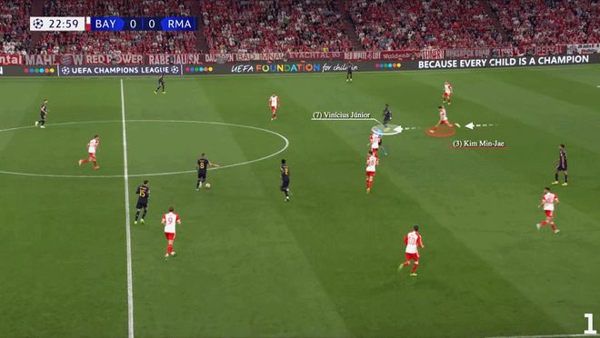 那场比赛在某种程度上为他日后在欧冠中的一些最佳表现提供了蓝图。维尼修斯全场仅有38次触球,同时赢得三次犯规,仅尝试18次传球。而这18次传球中的一次,就促成了球队的首开纪录——他在接应身后球后带球突入禁区,吸引防守球员后传给本泽马。