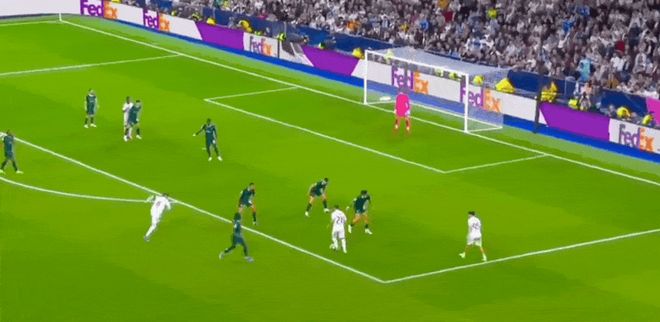 领先后的皇马进攻更加从容,仅仅几分钟后,维尼修斯边路突破多人的防守,送出精彩直塞,巴尔韦德再次劲射破门,2:0!门将多纳鲁马非常愤怒。然而巴尔韦德的表演还未结束,第42分钟,皇马反击到禁区,卜拉欣迪亚斯挑传禁区,巴尔韦德插上挑球过掉格伊,抽射破门,3:0!巴尔韦德上演帽子戏法!