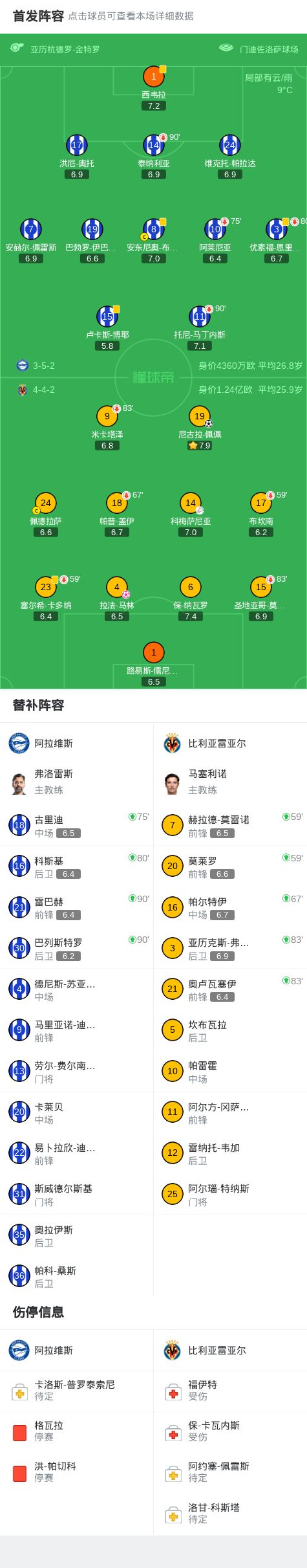 第40分钟,拉法-马林头球解围变乌龙,阿拉维斯1-0比利亚雷亚尔
