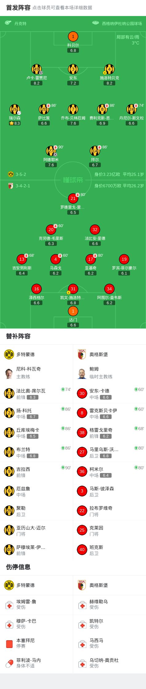 第59分钟,雷贾尼头球破门,多特2-0奥格斯堡