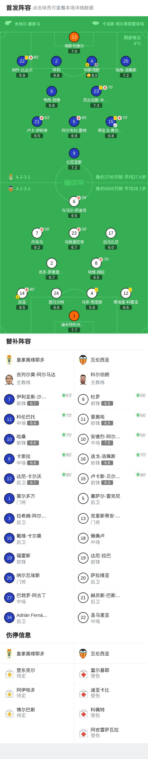 北京时间3月15日西班牙足球甲级联赛 联赛 第28轮,皇家奥维耶多主场对阵瓦伦西亚。皇家奥维耶多科斯塔斯破门。最终比分皇家奥维耶多 1-0 瓦伦西亚。