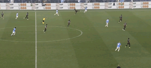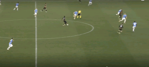 ↑而在这次进攻前,米兰的反击中,美队持球,没有给启动的莱奥传直塞。