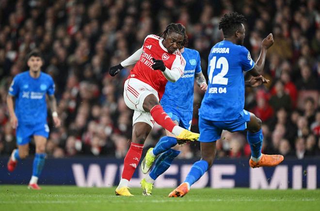 最终在第36分钟,阿森纳从勒沃库森的后场界外球里夺回球权,通过连续传递送到了埃泽脚下,后者打出一脚漂亮的远射,从而打出了比分优势: