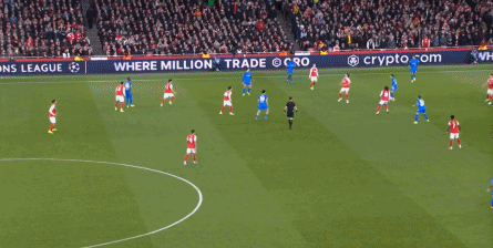 其实在这次进攻里,你依然可以看到问题,比如哲凯赖什这一点如果换做身体相对轻便的点位,回接过程中降速可以更快,停球就不必这么大,本-怀特的脚下调整也不必这么多,但在勒沃库森难以封闭空间的情况下,这些问题都不致命了,照样可以及时送进人在右肋的萨卡,后者完成转身,便衔接到了拉边冲击的哲凯赖什: