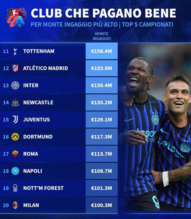 13. 国际米兰 1.394亿欧元